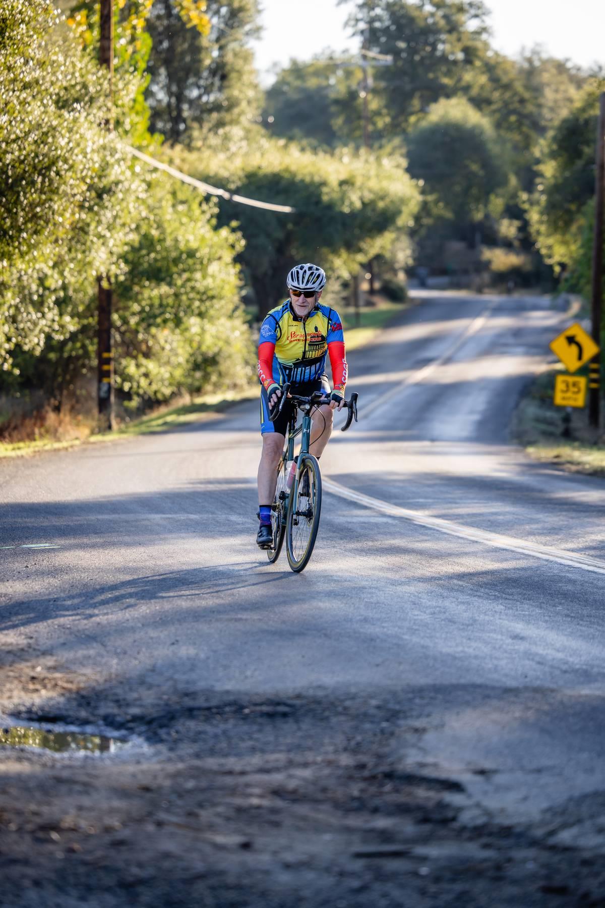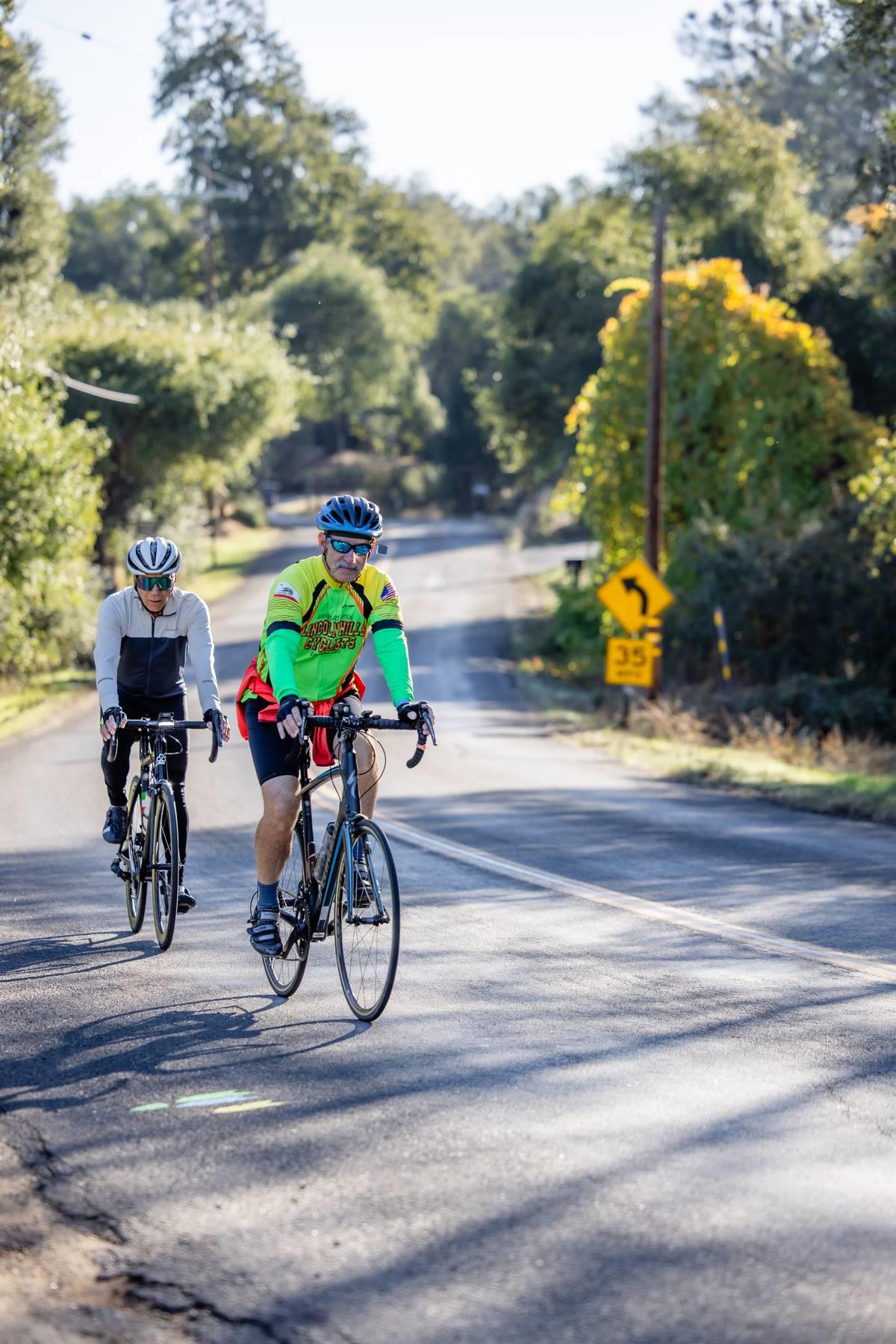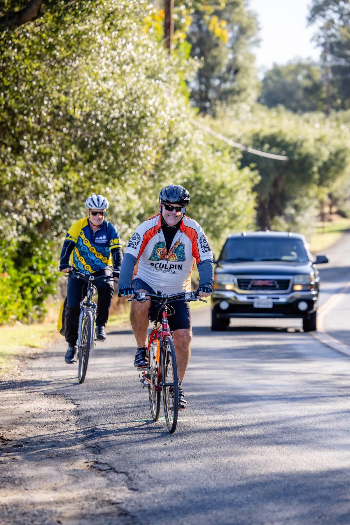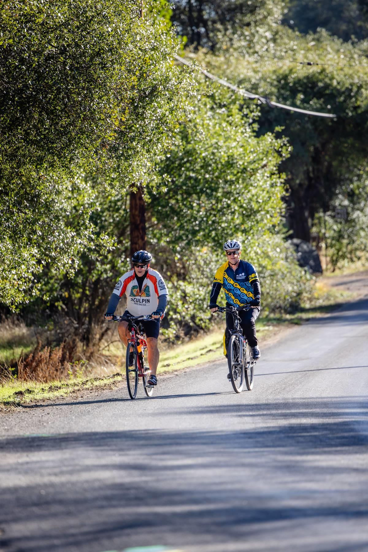 Metric Century: Ride through beautiful oak covered hills passing by horse ranches, old wooden barns, country estates, and lush vineyards. Climb challenging Chili Hill, Baxter Grade, and picturesque Millerton Road, while enjoying three well-stocked rest stops run by local service clubs. Total climbing 4,076 feet.
