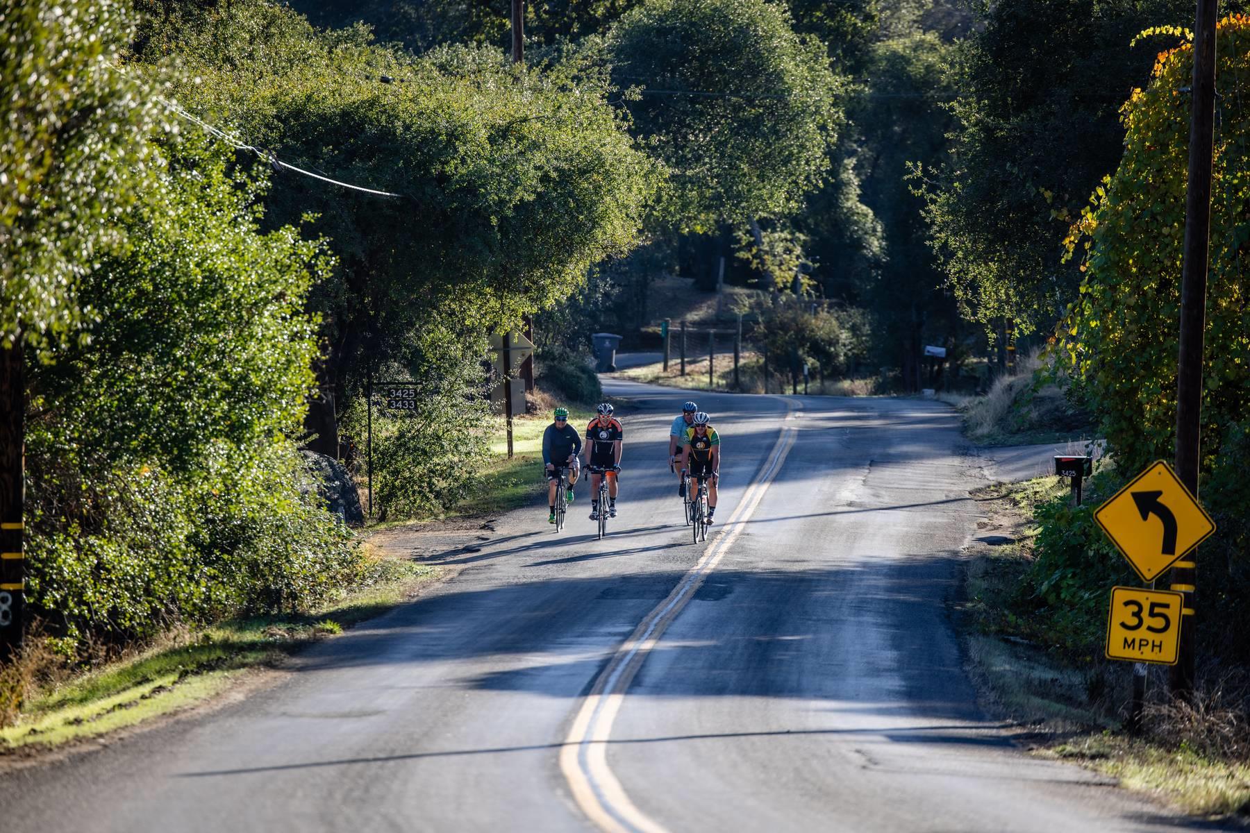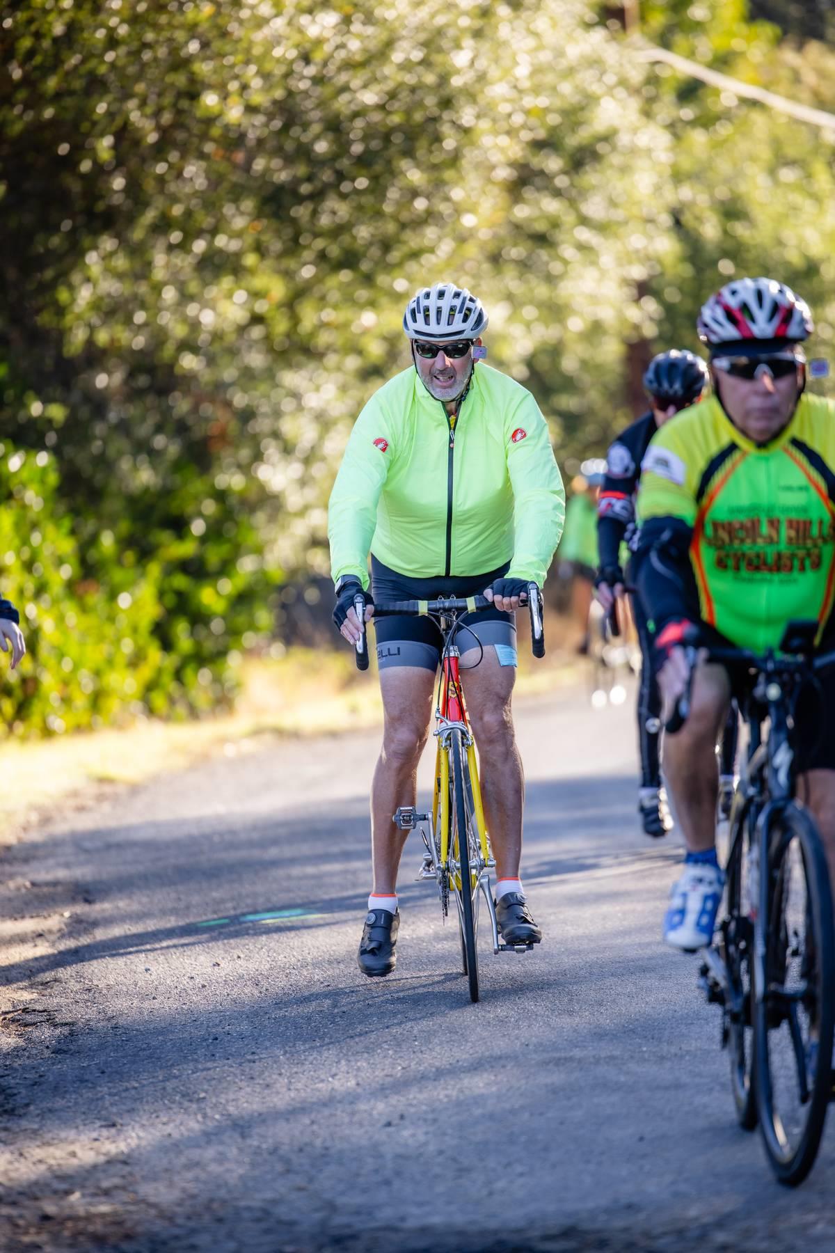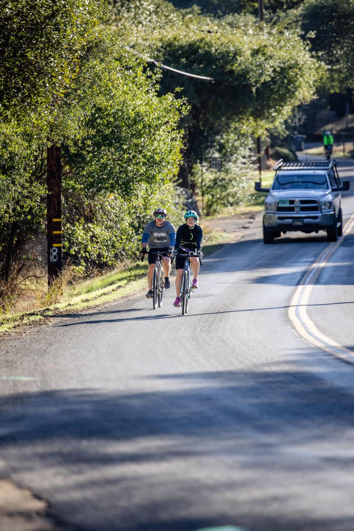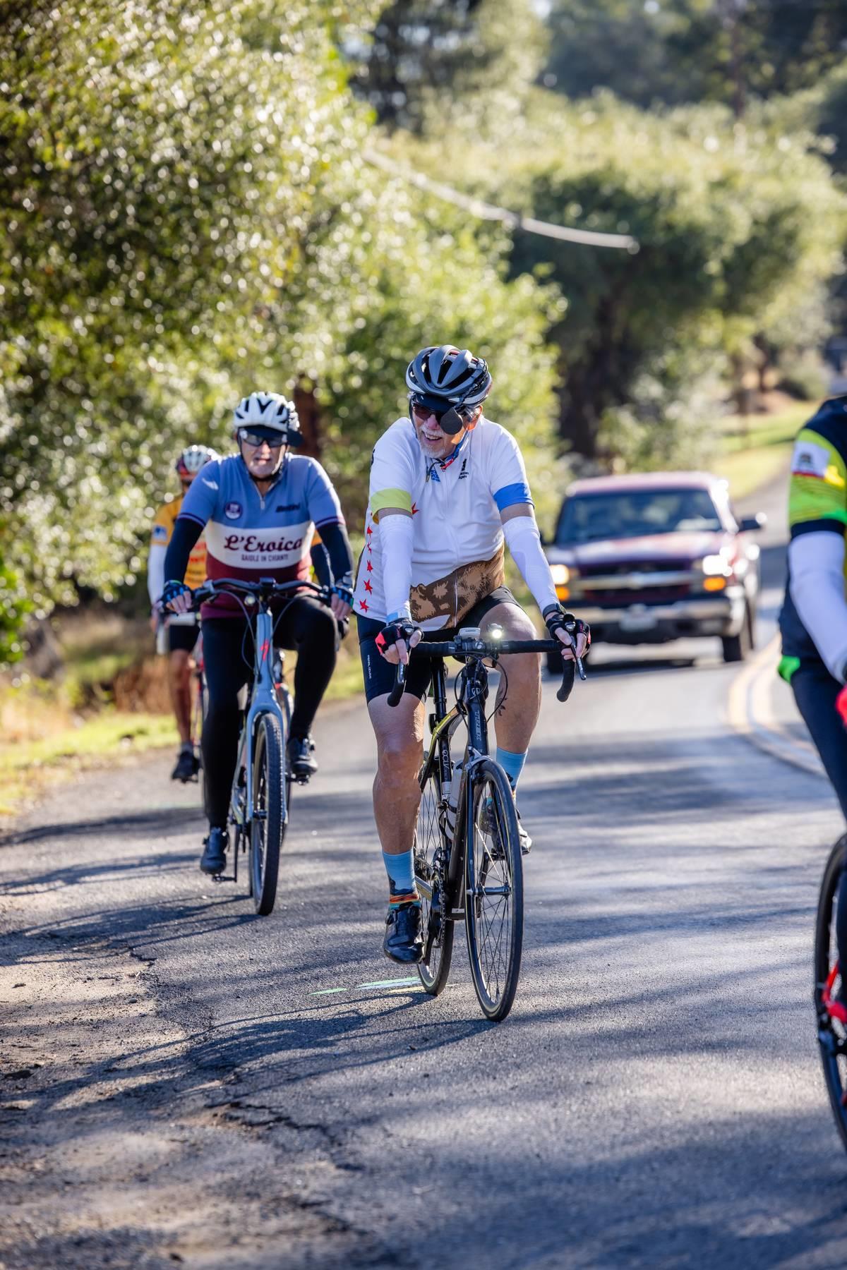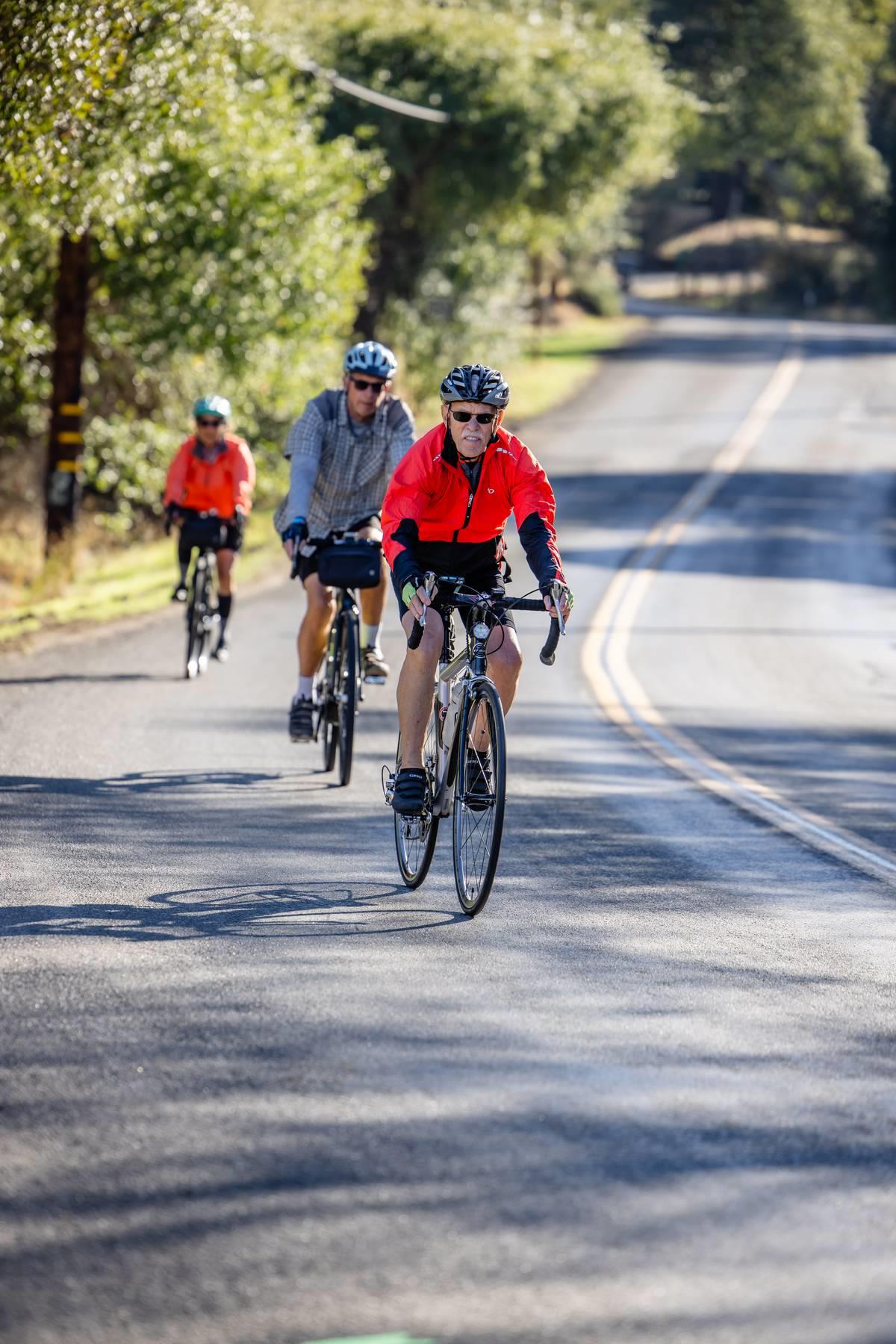 Metric Century: Ride through beautiful oak covered hills passing by horse ranches, old wooden barns, country estates, and lush vineyards. Climb challenging Chili Hill, Baxter Grade, and picturesque Millerton Road, while enjoying three well-stocked rest stops run by local service clubs. Total climbing 4,076 feet.