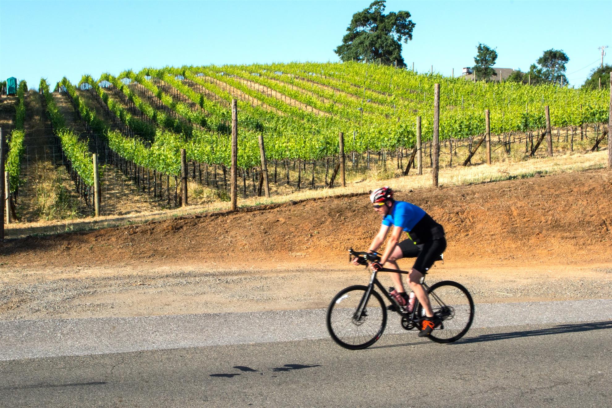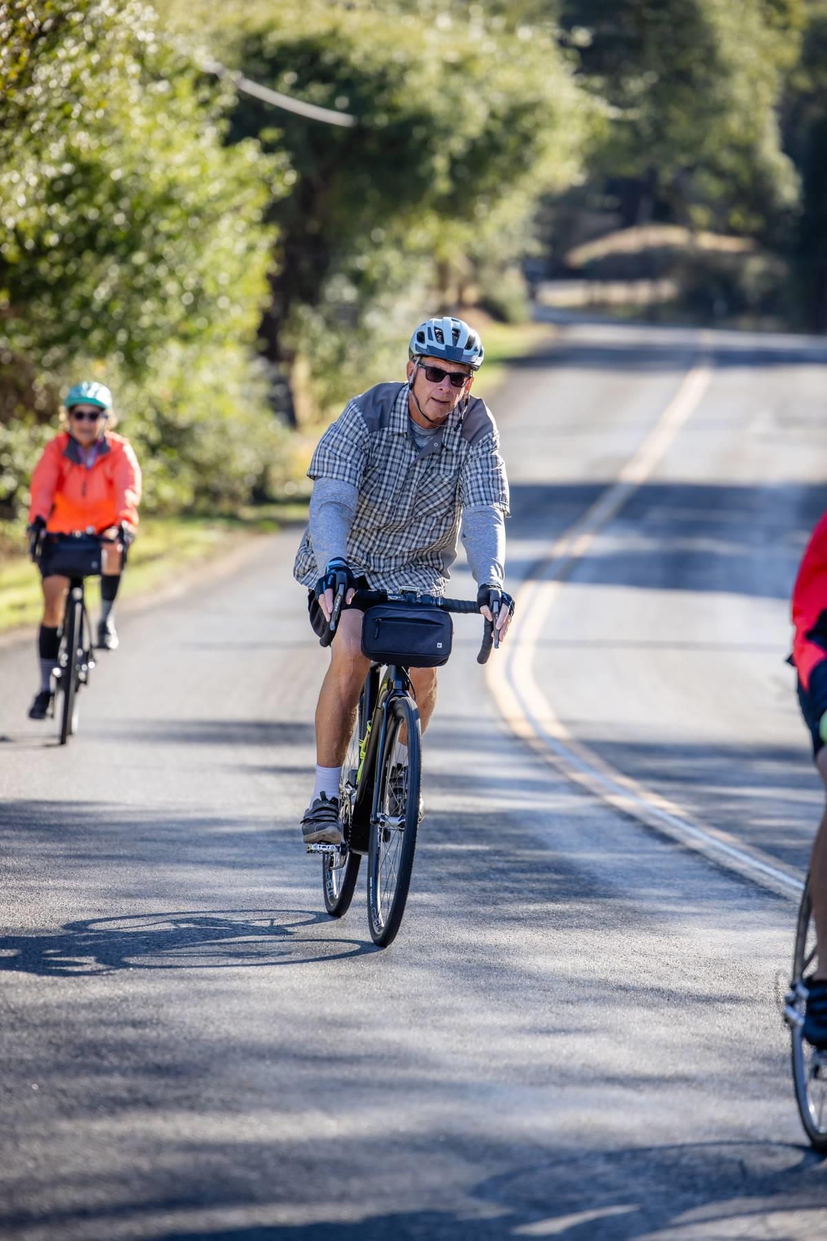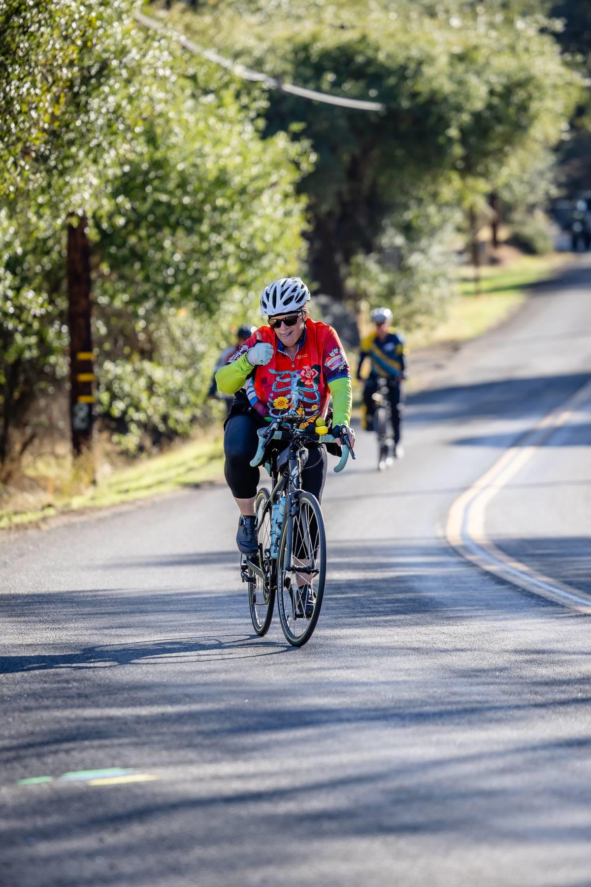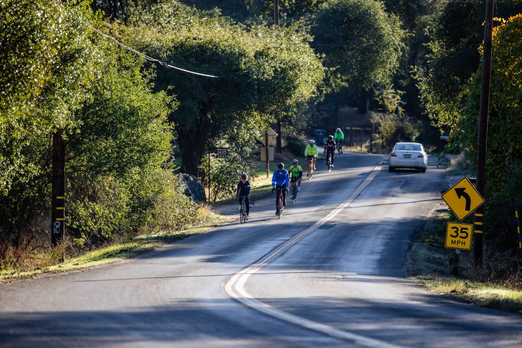 Metric Century: Ride through beautiful oak covered hills passing by horse ranches, old wooden barns, country estates, and lush vineyards. Climb challenging Chili Hill, Baxter Grade, and picturesque Millerton Road, while enjoying three well-stocked rest stops run by local service clubs. Total climbing 4,076 feet.